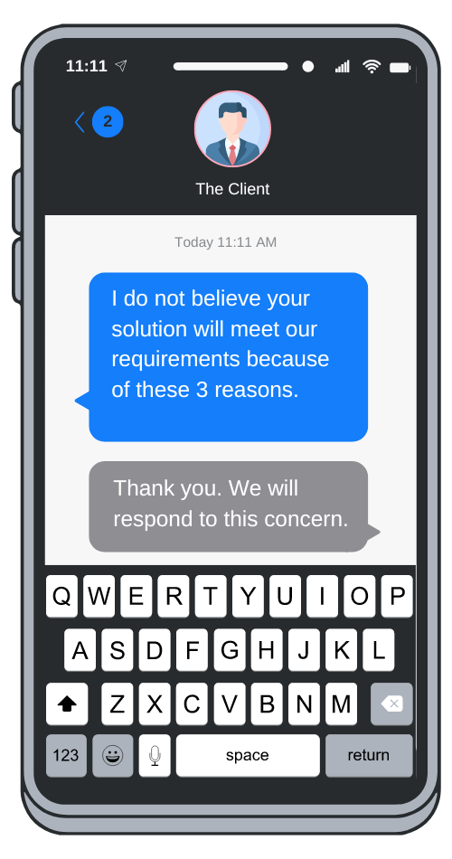We were closer to meeting the requirements than the client understood. The client knew things we didn’t know. And we knew things the client didn’t know. How can we mitigate this scarcity of information? With communication.